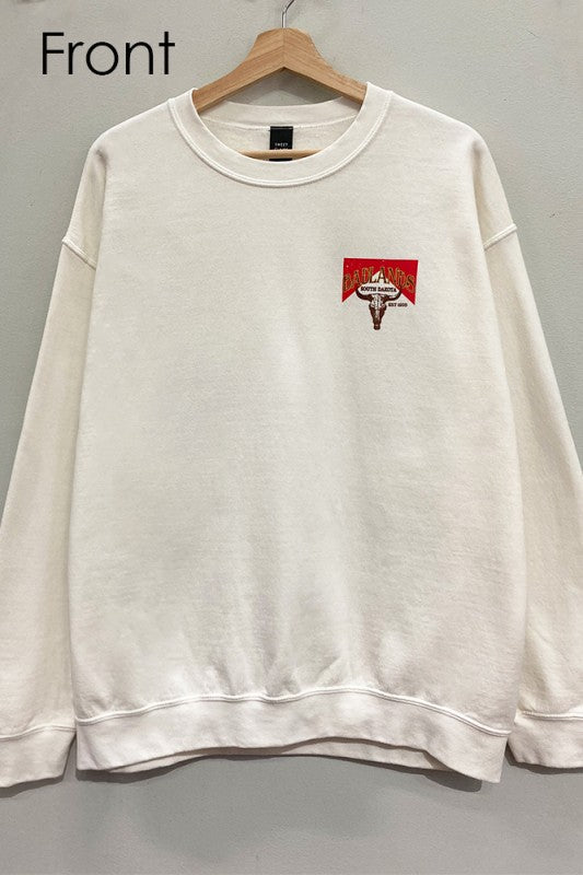 LONG SLEEVE GARMENT-DYED/CREW-NECK "BADLANDS SOUTH DAKOTA"  WESTERN OVERSIZED GRAPHIC FRONT AND BACK PRINT SWEATSHIRT TOP