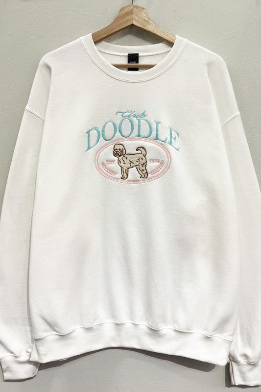 LONG SLEEVE CREW-NECK EMBROIDERED CLUB DOODLE PET GOLDEN DOODLE OVERSIZED GRAPHIC SWEATSHIRT