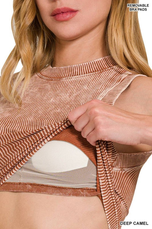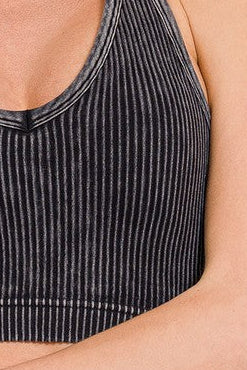 Stone Washed Ribbed Seamless Crop Top W Bra Pad