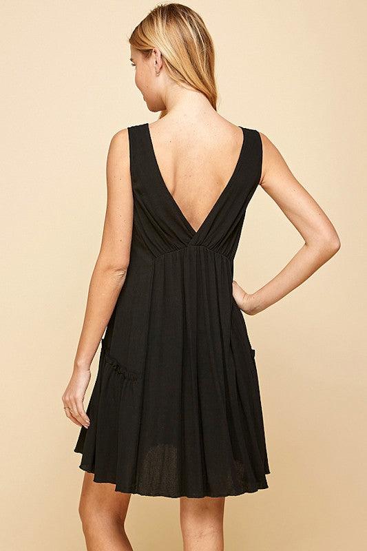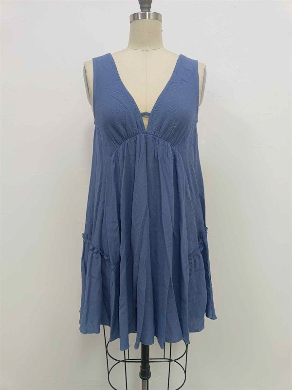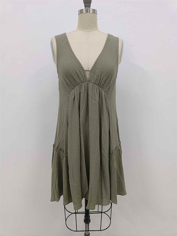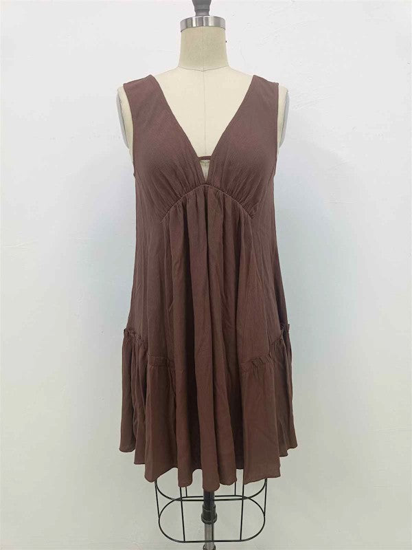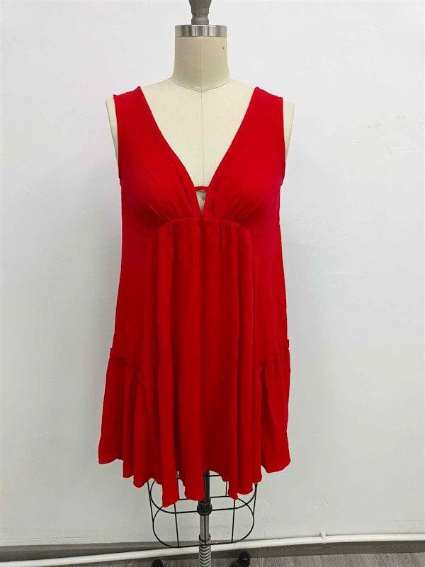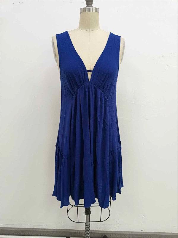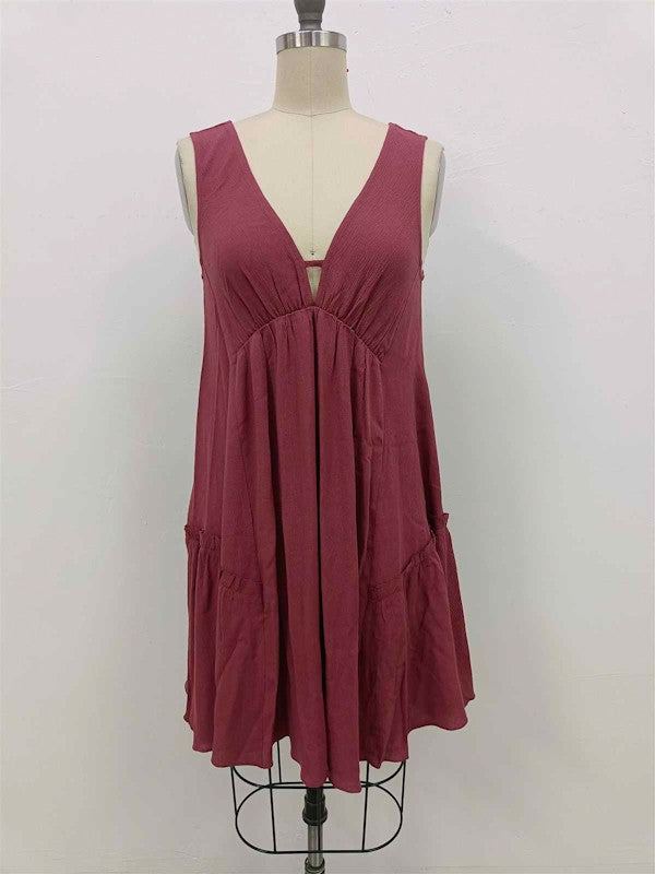 Solid, V Neck, Knee Length Full Dress.Model Height: 5'9.5"Model Measurements: 33-25-34