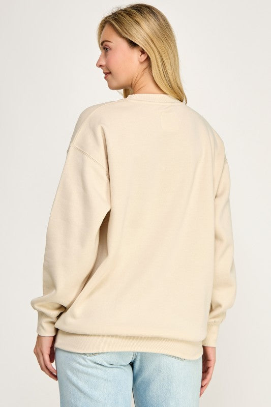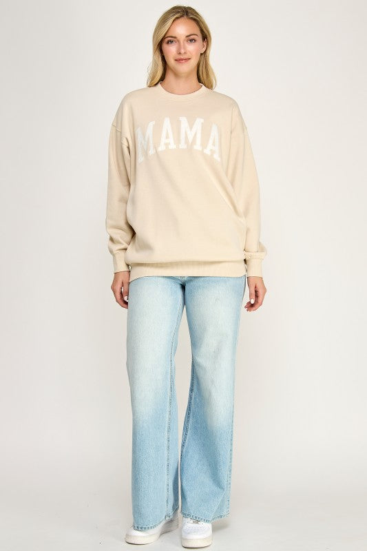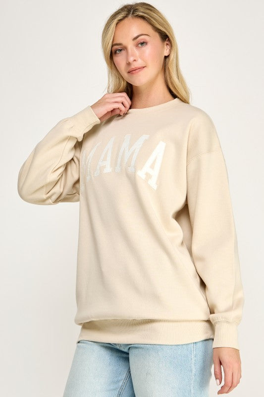 BASIC FLEECE RELAXED FIT CREW NECK SWEATSHIRT WITH  MAMA PATCH