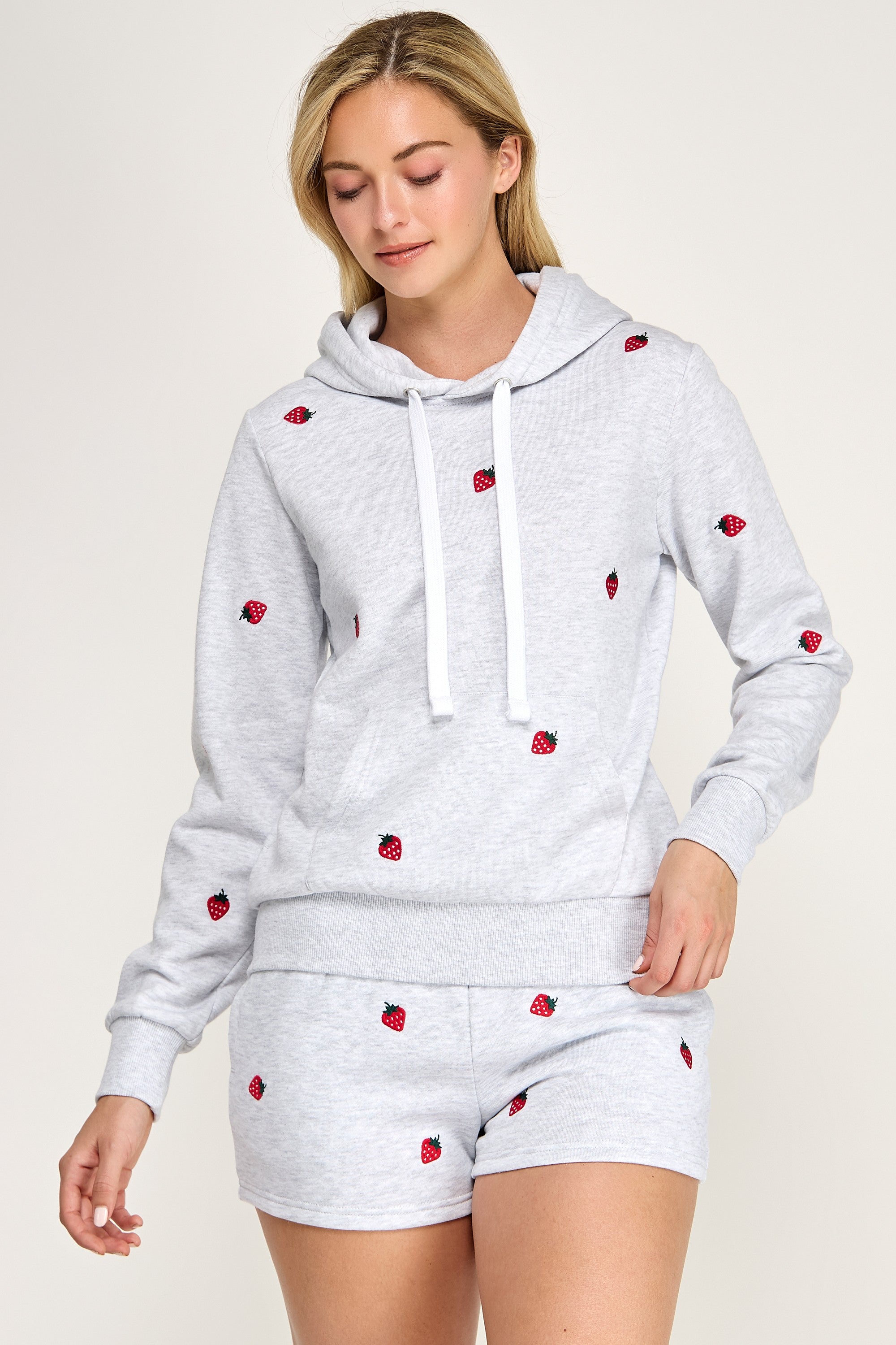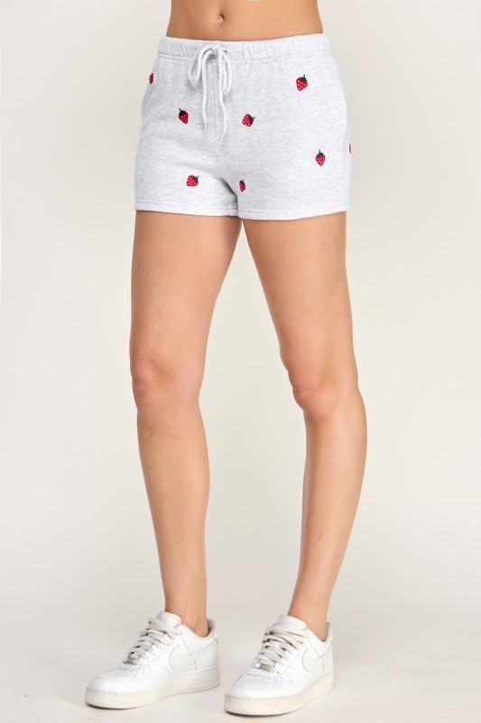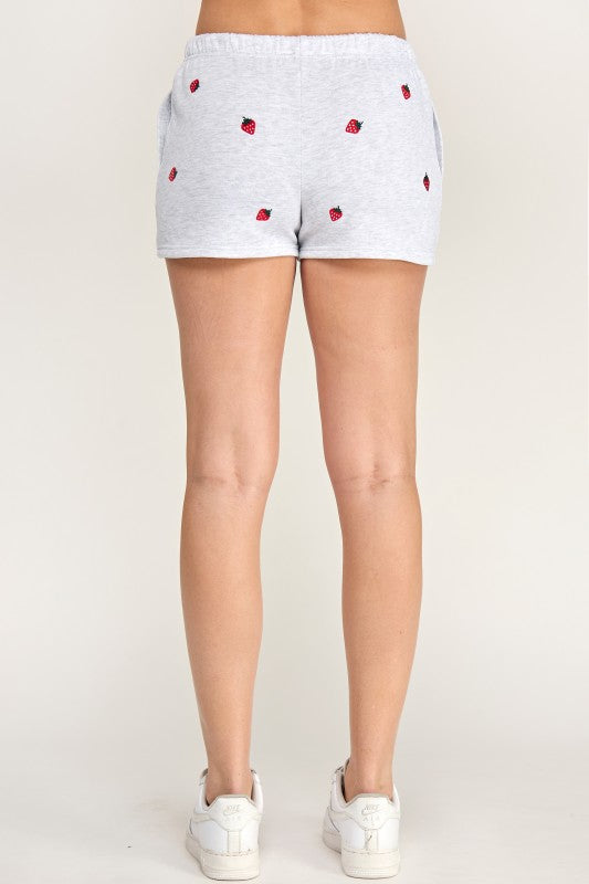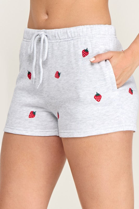 BASIC FLEECE SHORTS WITH SIDE POCKETS WITH STRAWBERRY ALL OVER EMBROIDERY