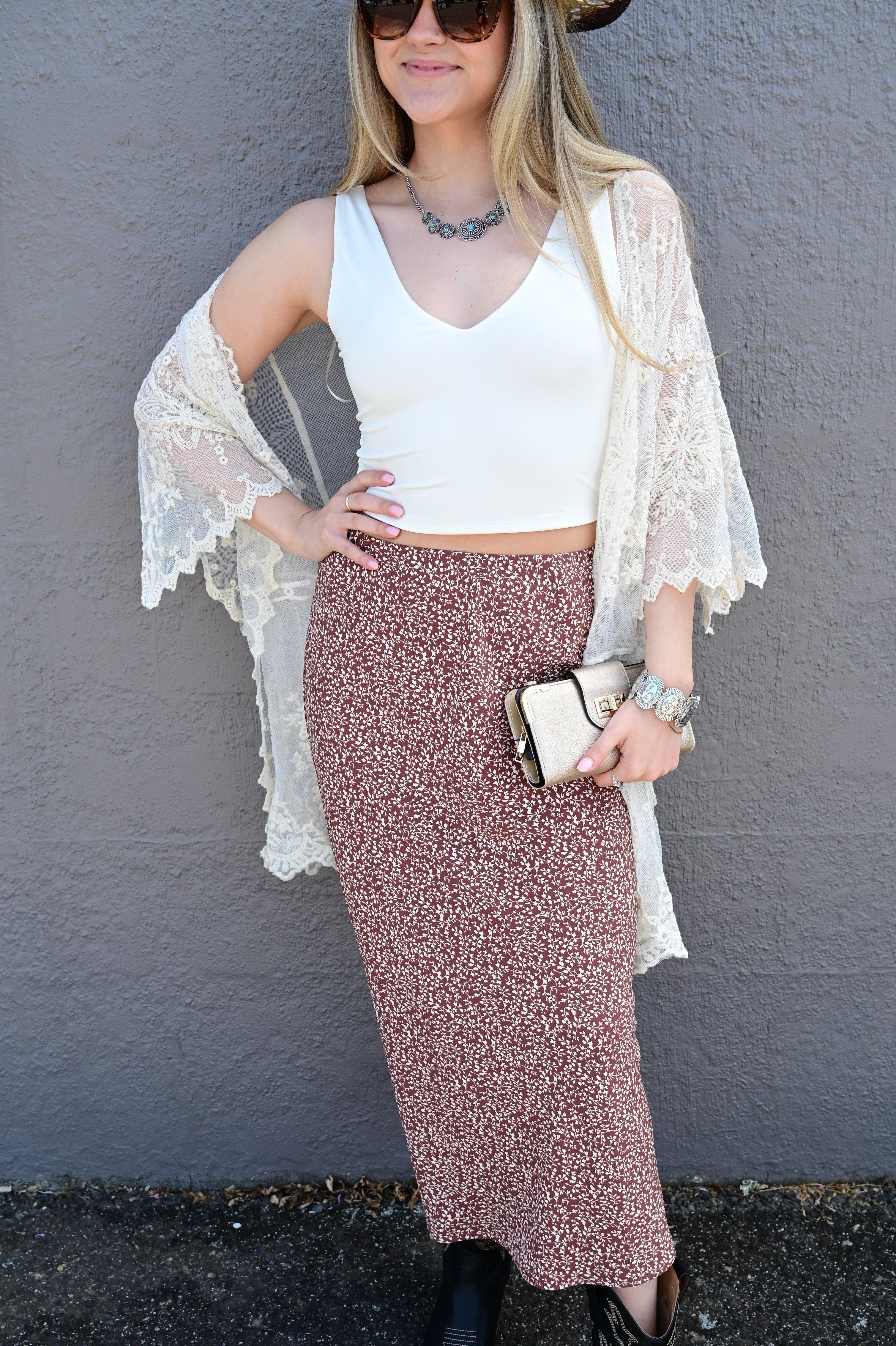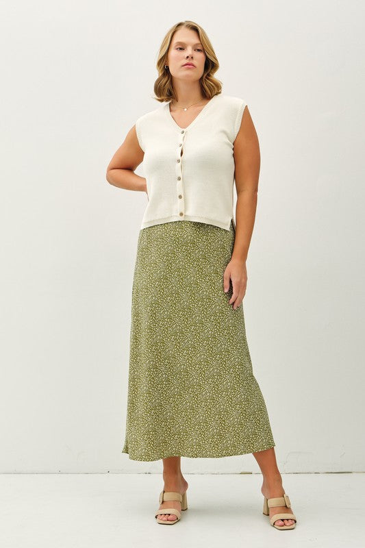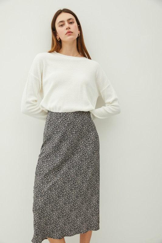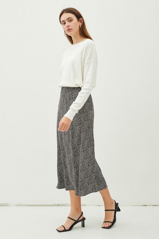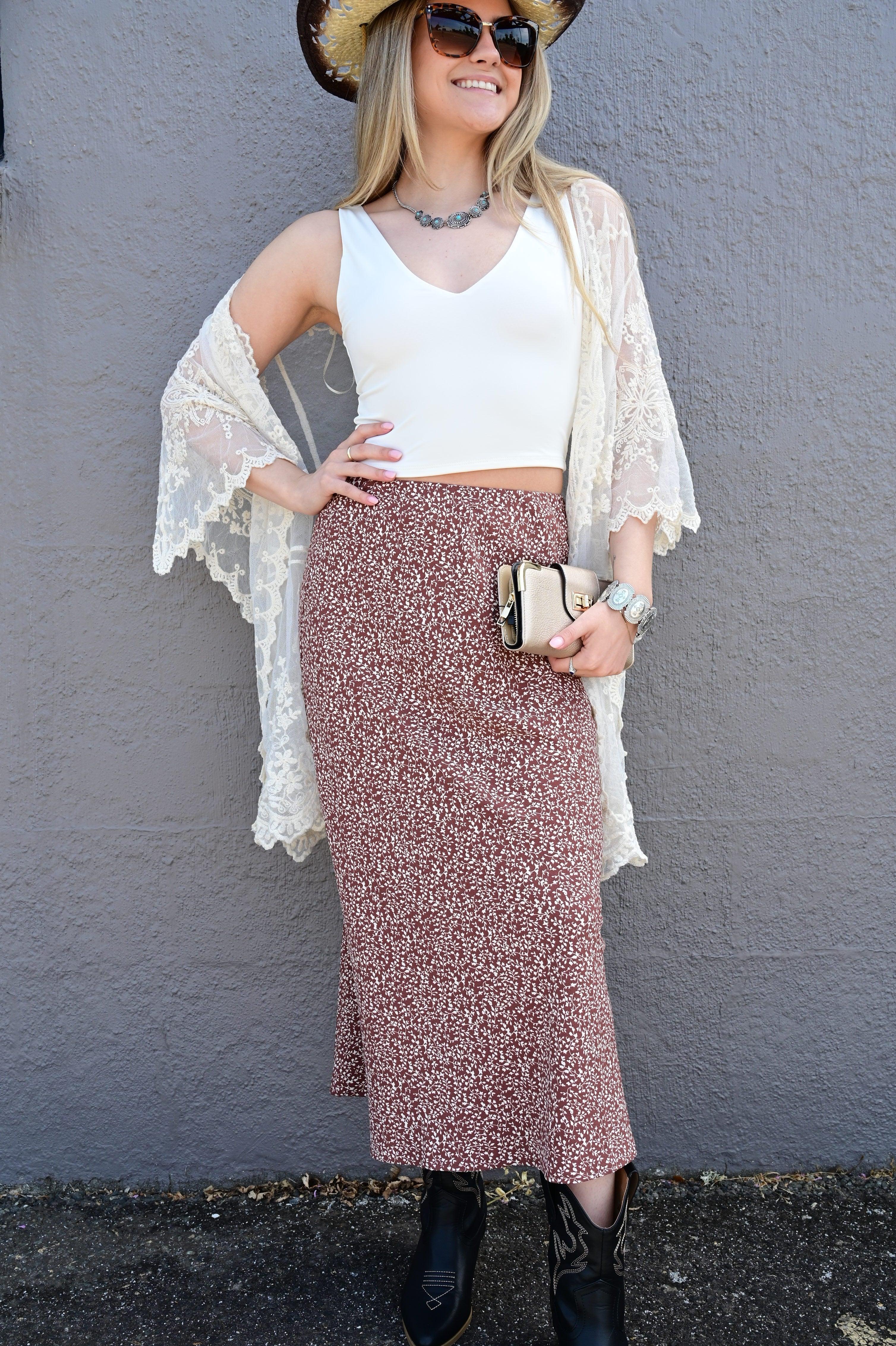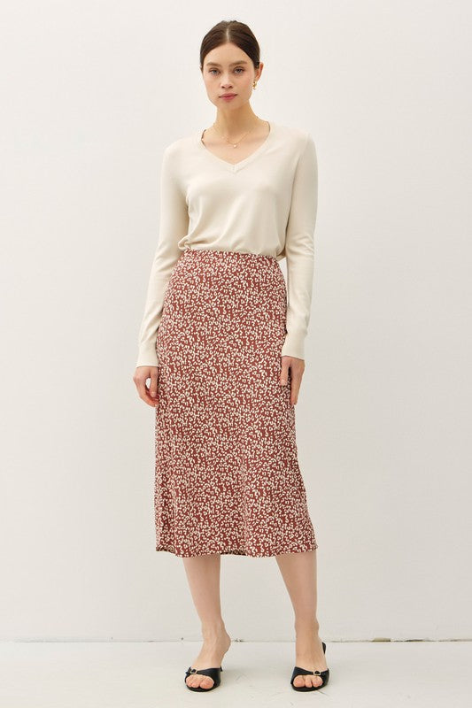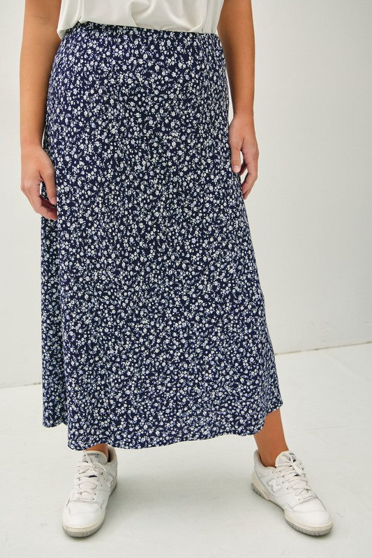 * FLORAL PRINT* MIDI SKIRT* HITS BELOW THE KNEE LENGTH* ELASTIC WAISTBAND* BANDING* LIGHTWEIGHT* RETRO-INSPIRED* FEMININE