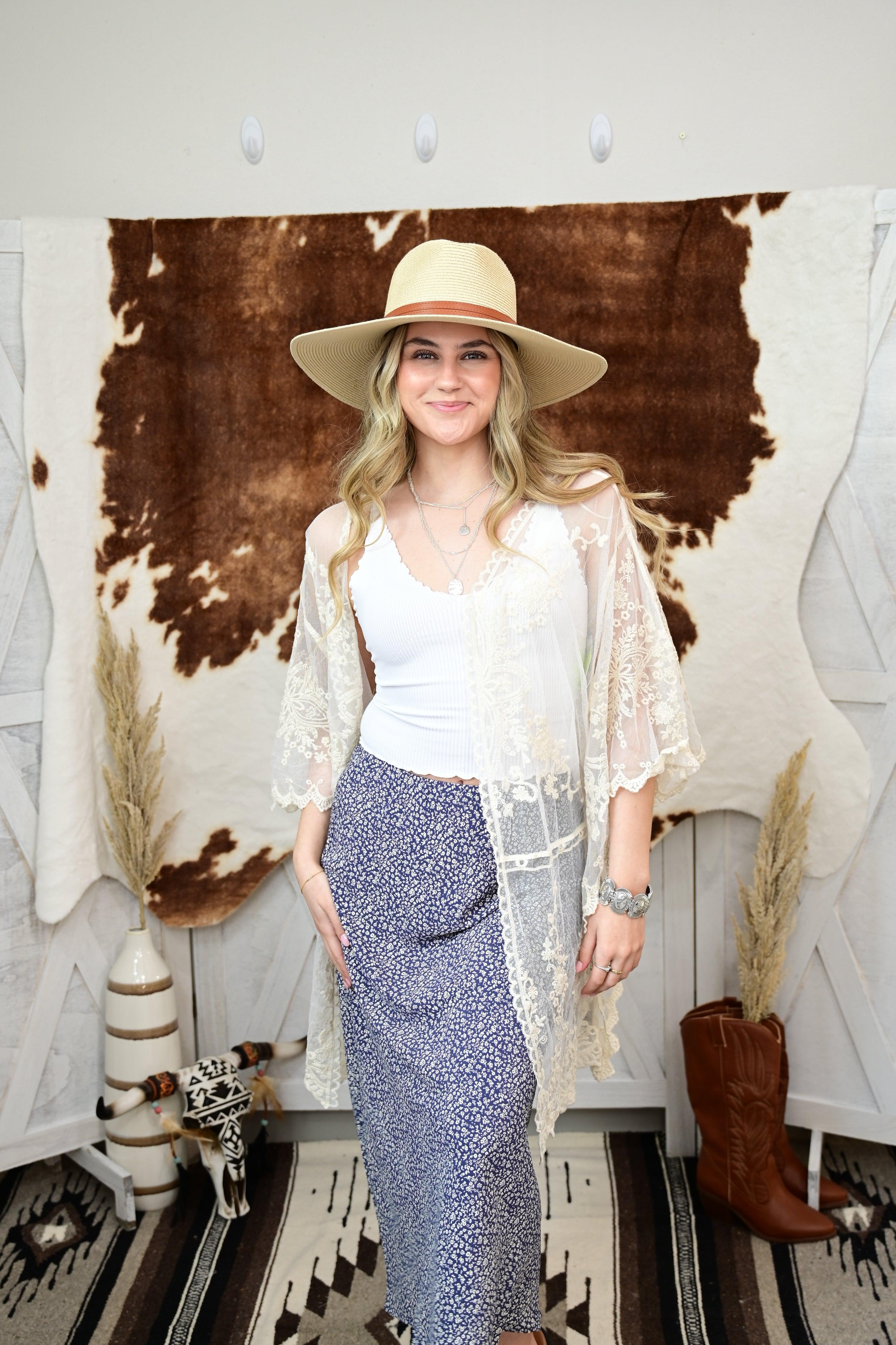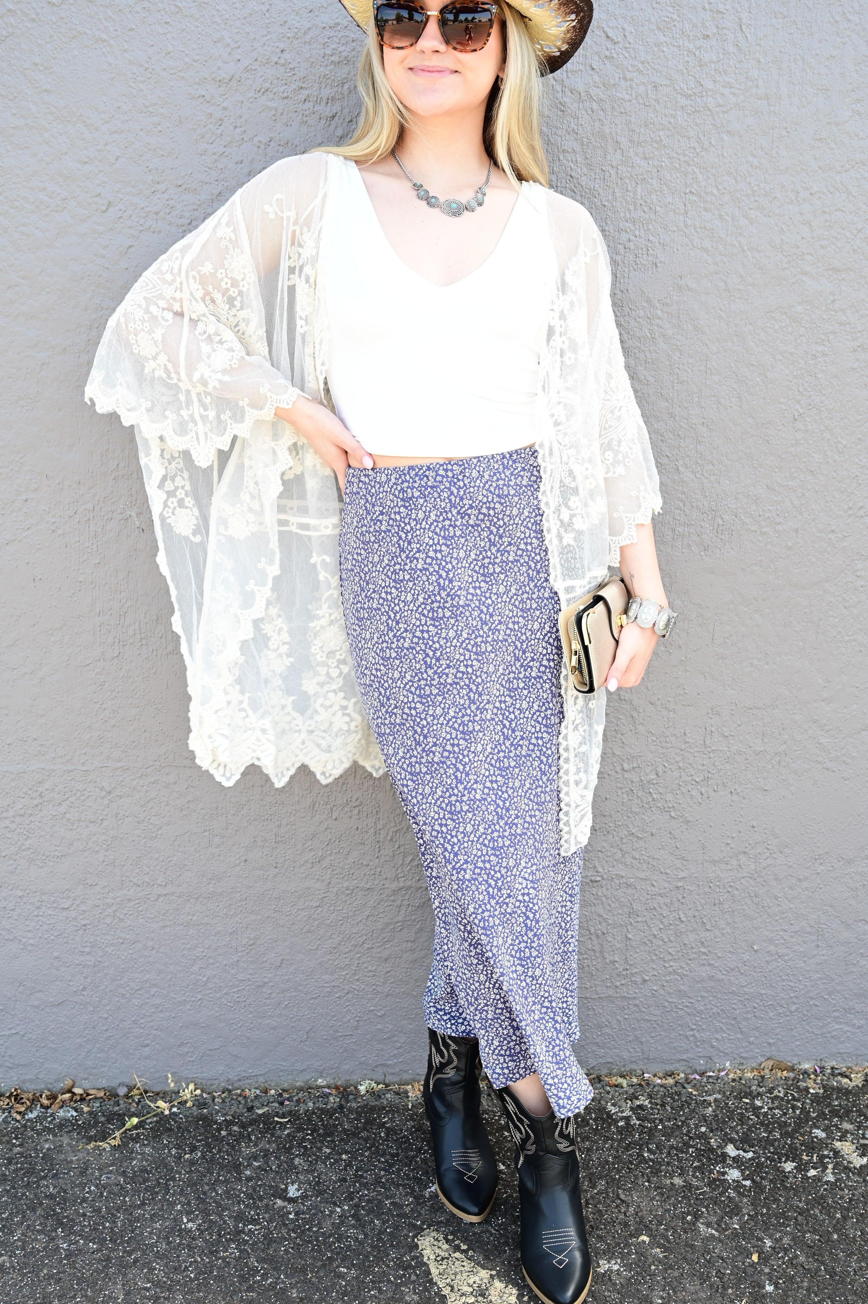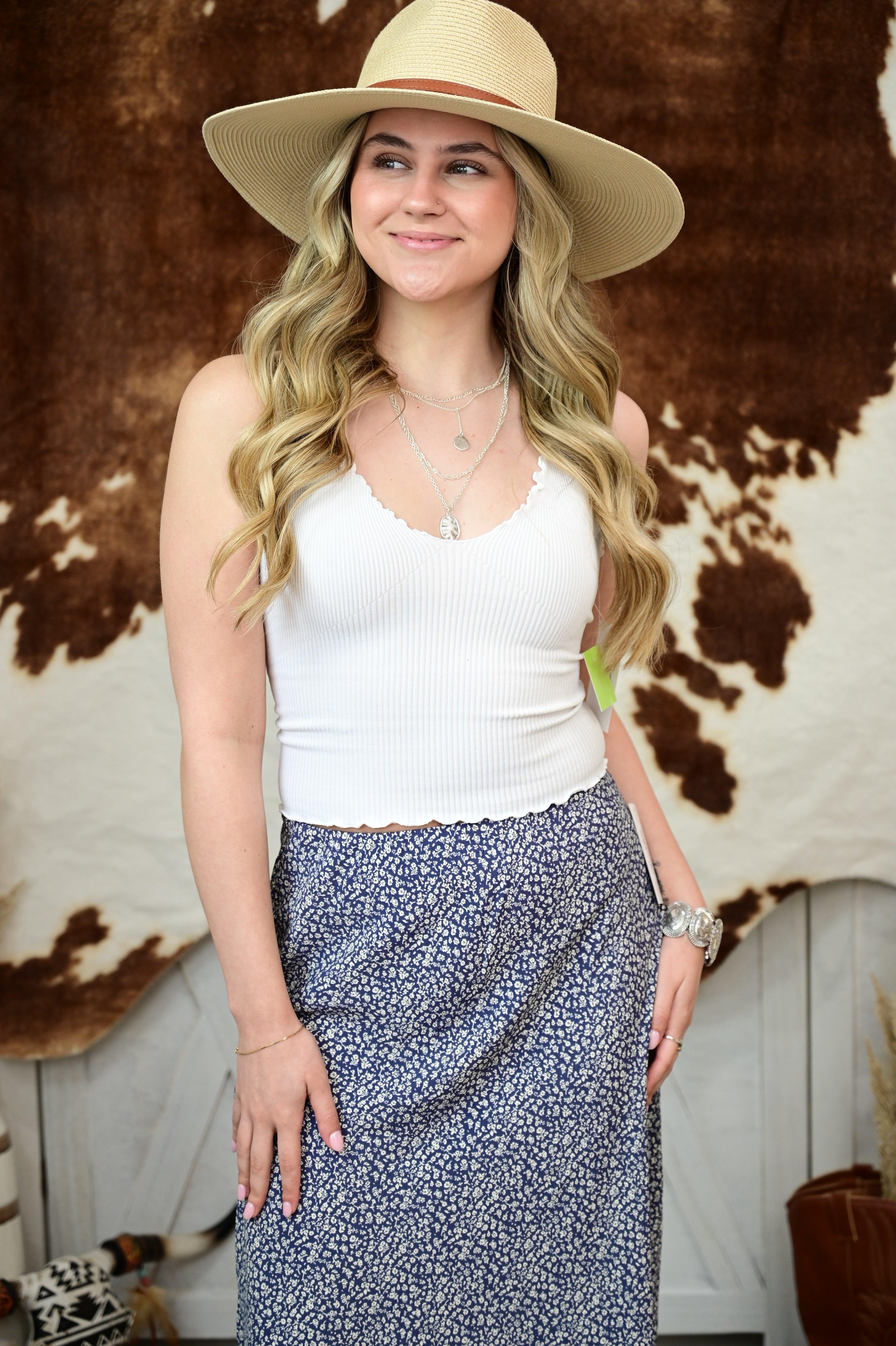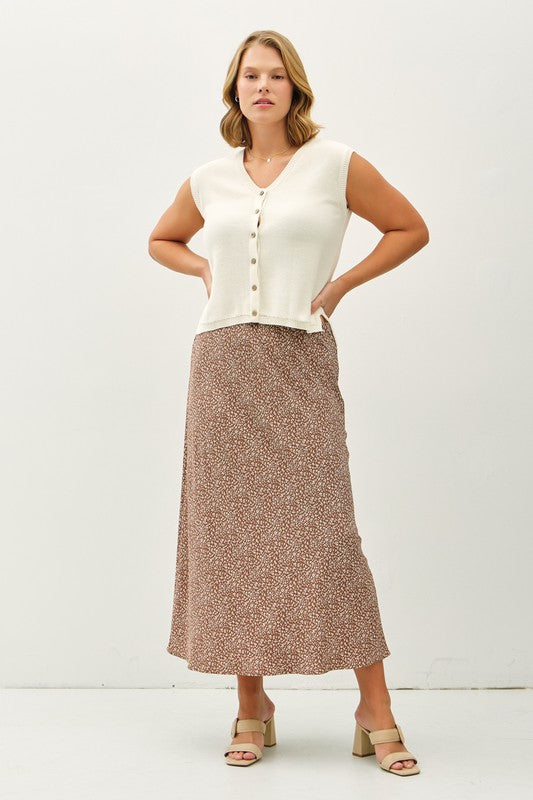 * FLORAL PRINT* MIDI SKIRT* HITS BELOW THE KNEE LENGTH* ELASTIC WAISTBAND* BANDING* LIGHTWEIGHT* RETRO-INSPIRED* FEMININE